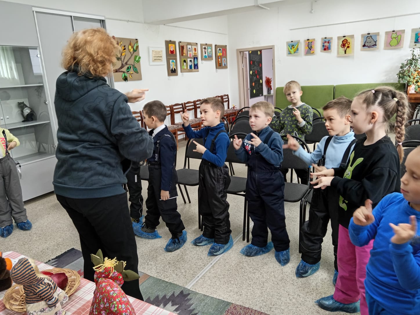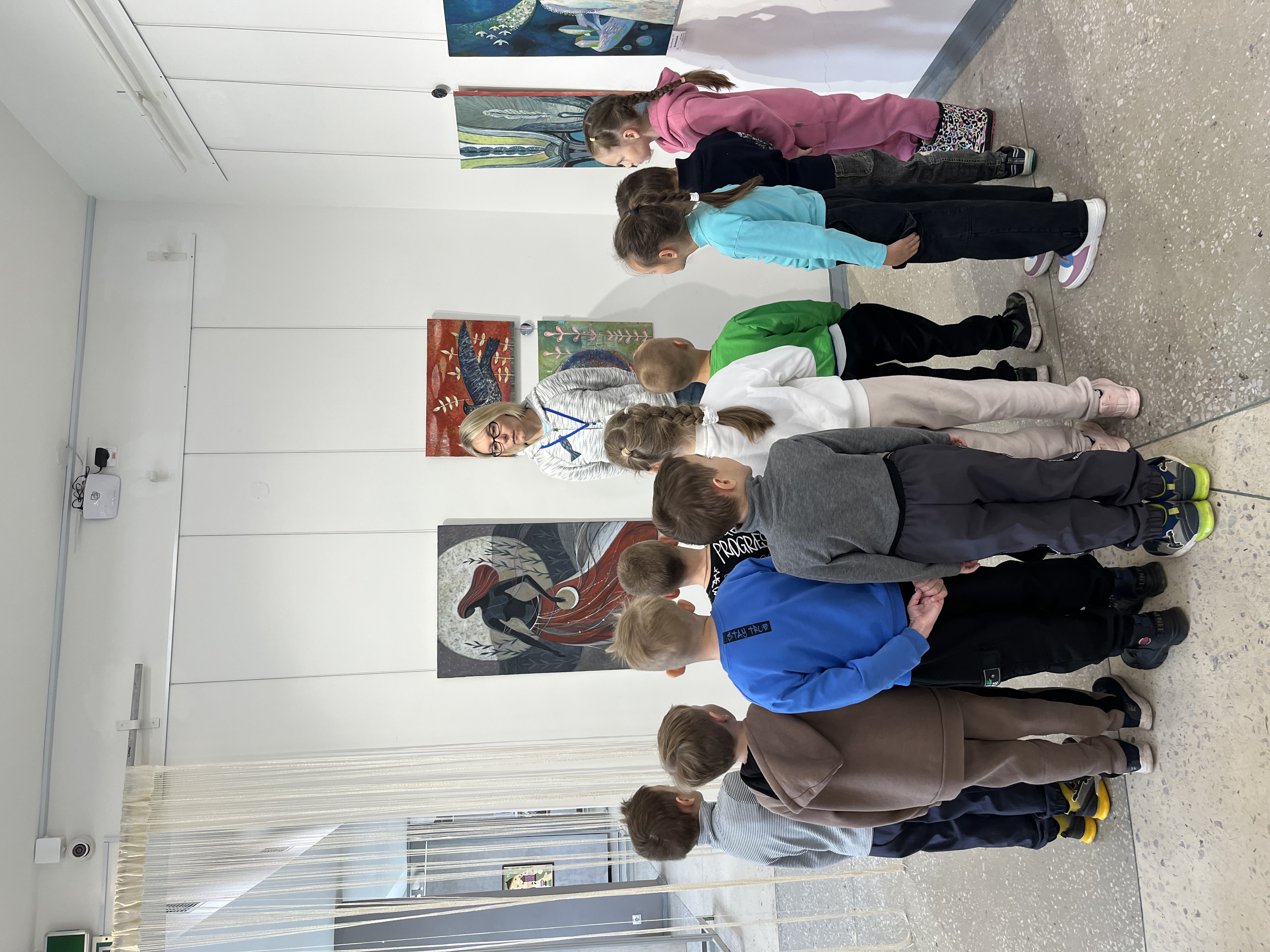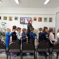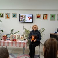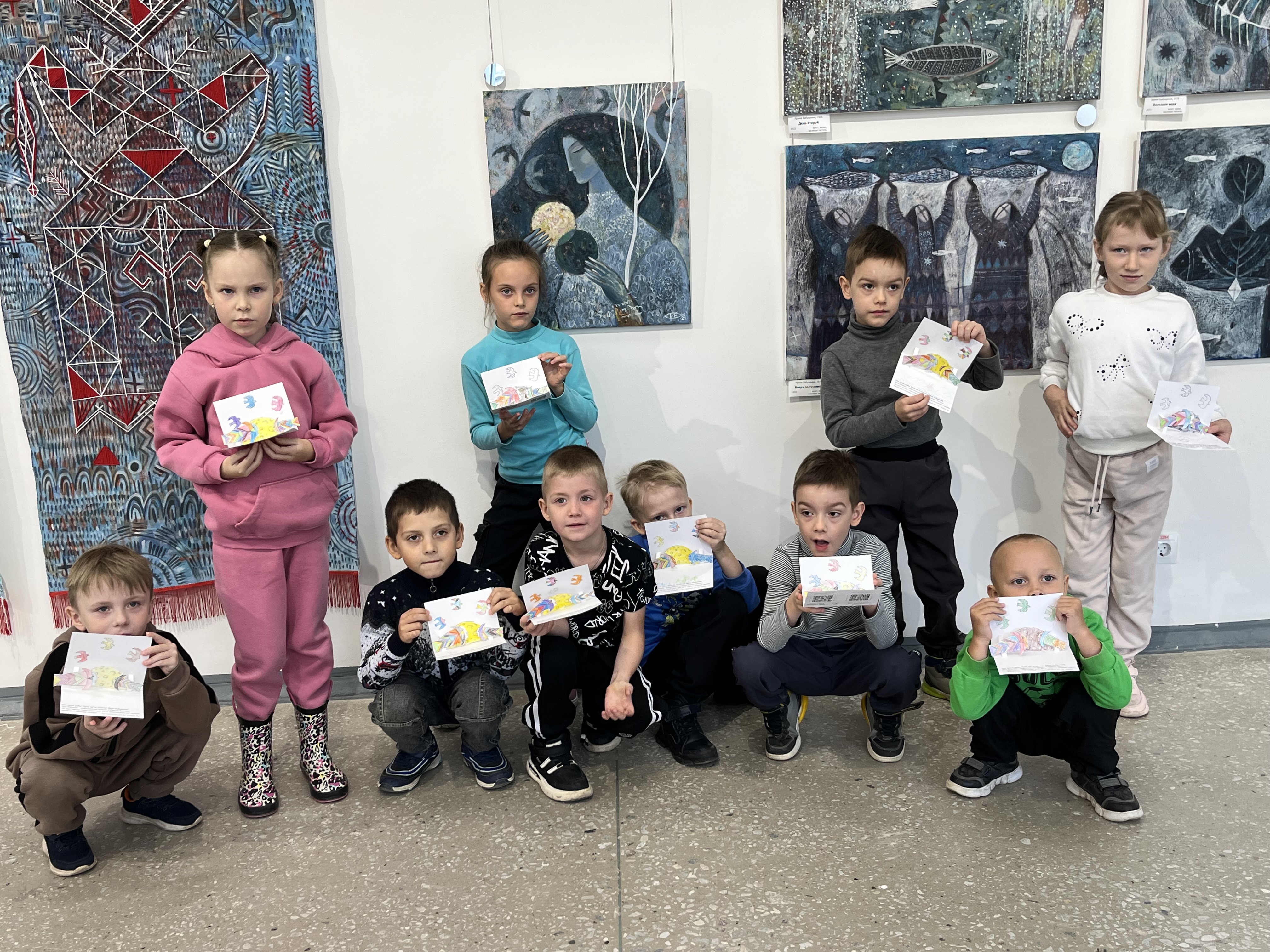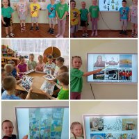 Экскурсия началась с "путешествия" по залу с картинами местного художника Ирины Бабушкиной, Дети с большим интересом рассматривали сказочные картины, учились видеть красоту и сочинили свою сказочную историю, которая стала темой последующего мастер-класса .