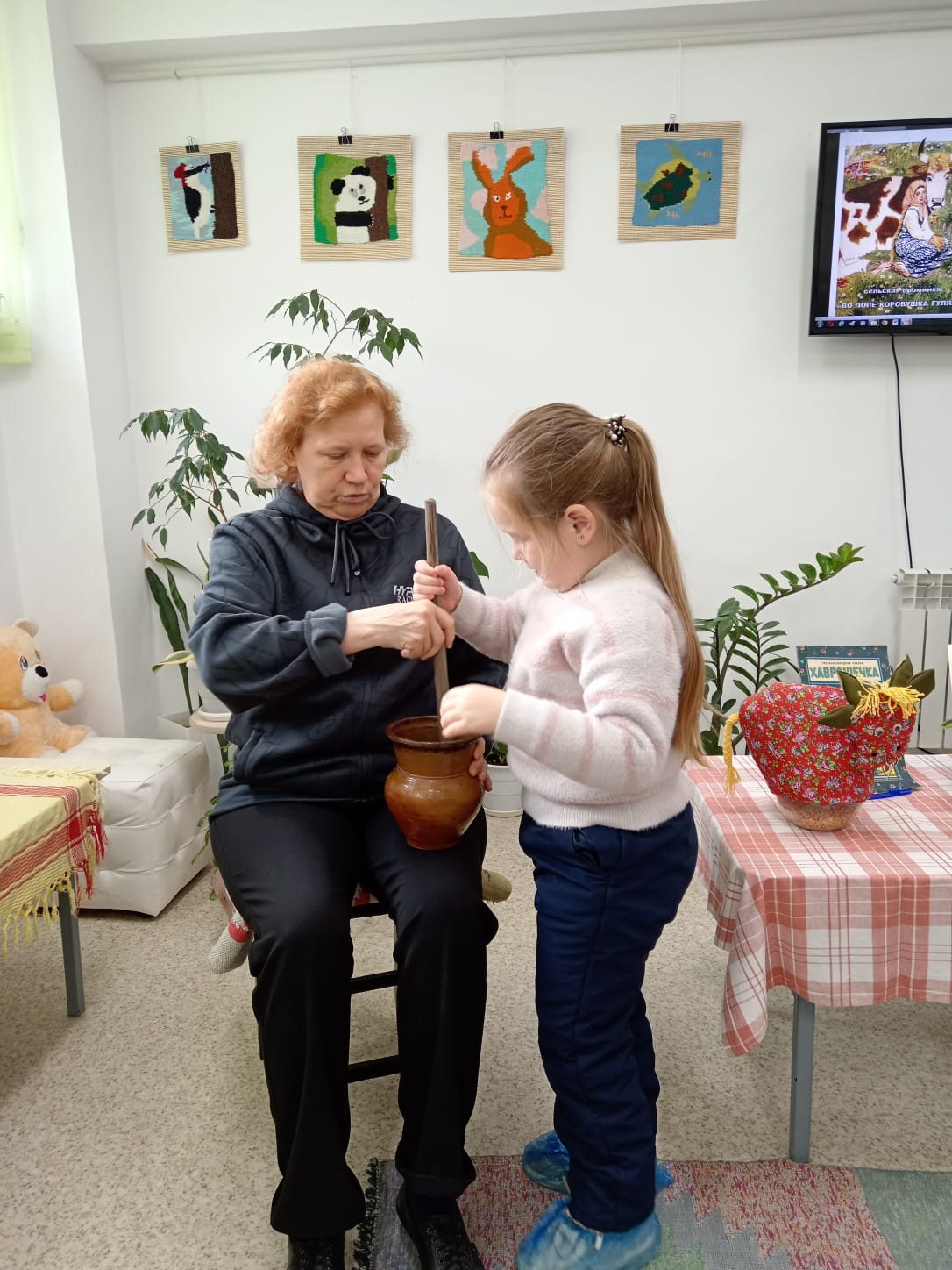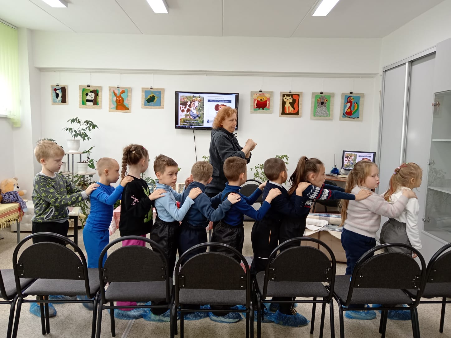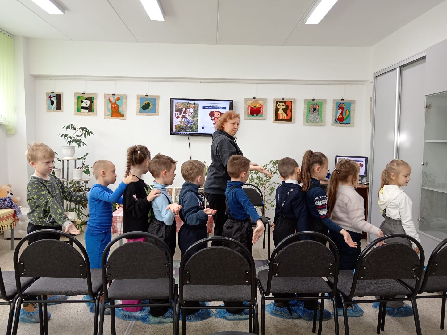 Экскурсия началась с "путешествия" по залу с картинами местного художника Ирины Бабушкиной, Дети с большим интересом рассматривали сказочные картины, учились видеть красоту и сочинили свою сказочную историю, которая стала темой последующего мастер-класса .