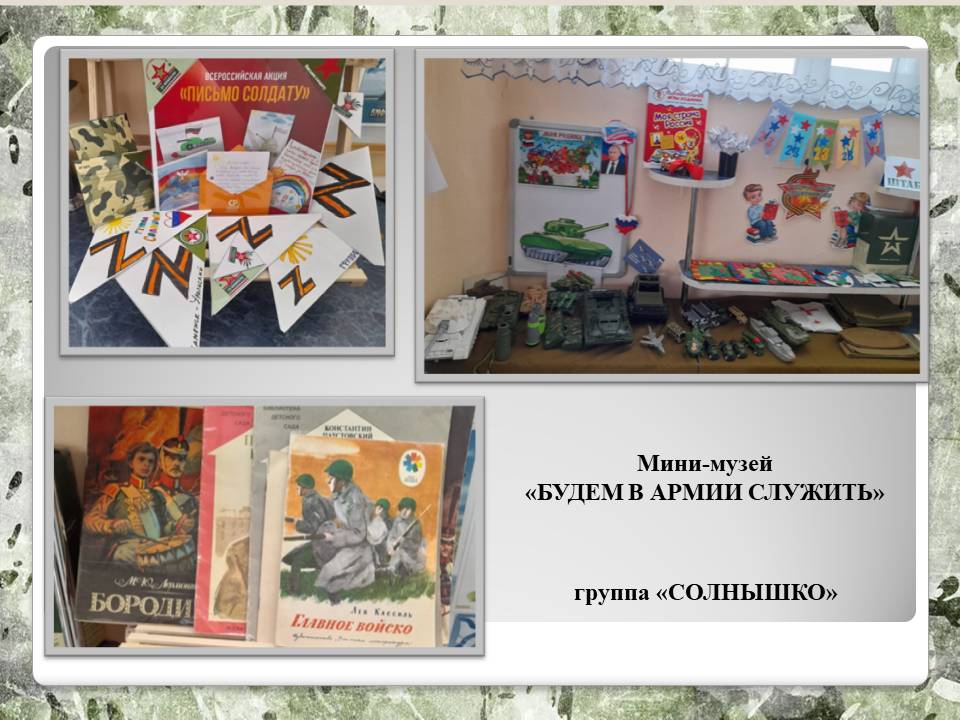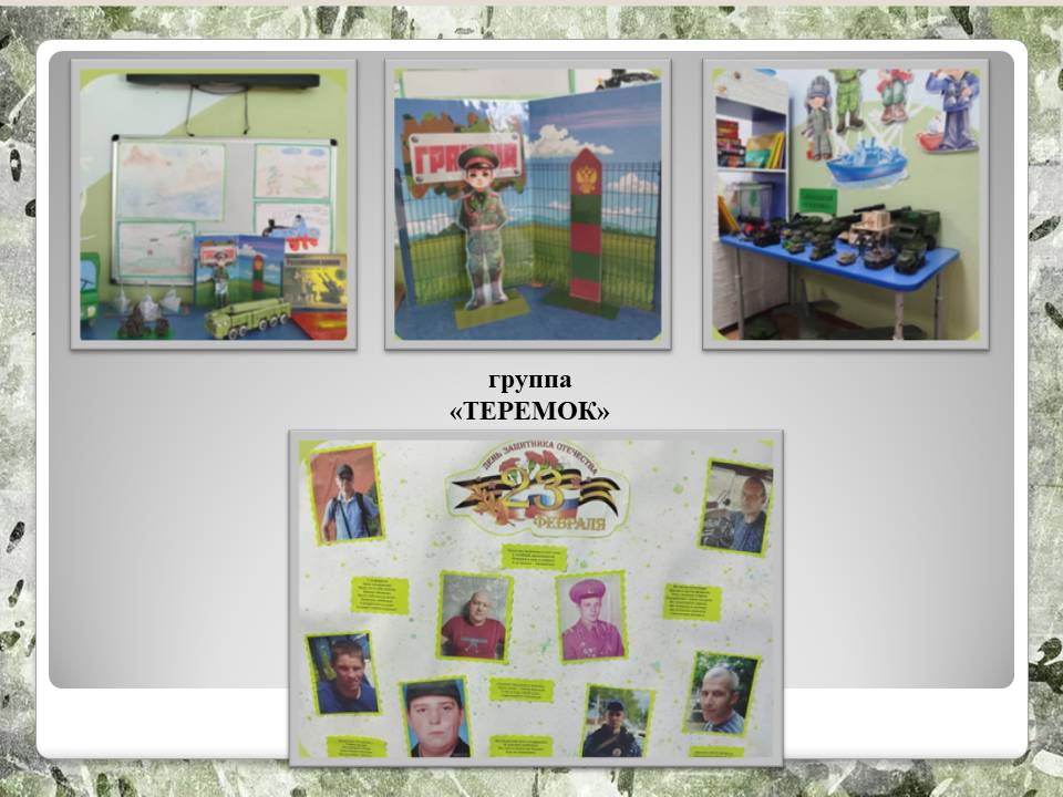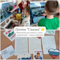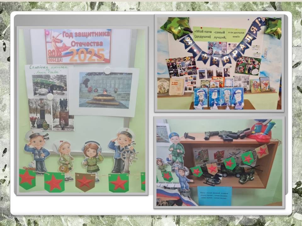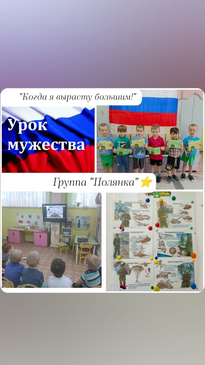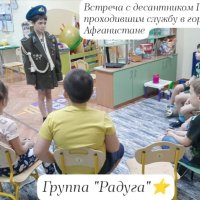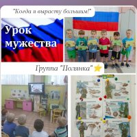 Во всех группах детского сада прошли "Уроки мужества", посвященные празднованию Дня защитника Отечества. С целью воспитания чувств патриотизма, любви к Родине, уважения к прошлому. Дети познакомились с героями-земляками. Дома совместно с родителями дети написали рассказы о своих папах, дедушках, нарисовали рисунки, поучаствовали в акции. Рассматривали награды ветерана ВОВ Кожевниковой Марии Николаевны. Были организованы встречи с военным летчиком, десантником, моряком. Ребята прониклись рассказами военных, захотели примерить военную форму и служить в будущем. Приглашённые гости поделились ценными советами с нашими будущими солдатами: заниматься спортом, соблюдать правила безопасности и конечно получать новые знания!