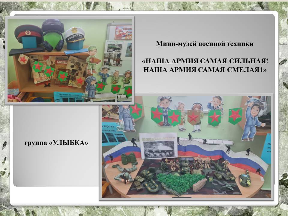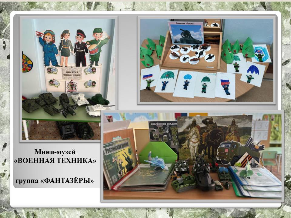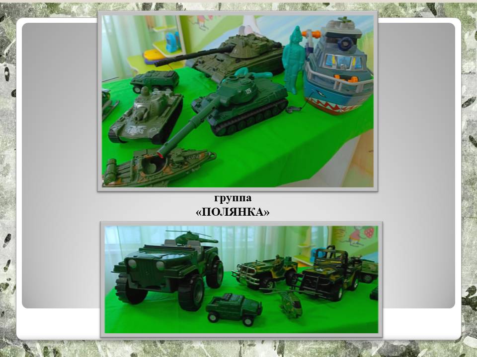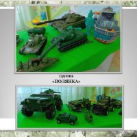 лены выставки военной техники из игрушек и поделок, которые педагоги детского сада на занятиях по конструктивно – модельной деятельности смастерили с детьми. В творческом процессе по созданию макетов военной техники педагоги с детьми использовали самые различные материалы. Бумага и картон, разнообразный бросовый материал (лотки упаковок для яиц, пластмассовые крышечки, спичечные коробки, пластиковые бутылки, воображение, мастерство, терпение – всё это помогло смастерить интересные макеты и модели военной техники для оформления выставок в группах.