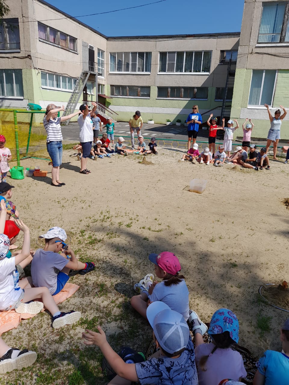 Ребята для хорошего настроения подарили друг другу самую добрую, солнечную улыбку, участвовали в конкурсах и играх с песком, выстроили оригинальные замки-башни и в большой дружной компании исполнили песню "Улыбка".