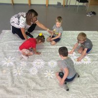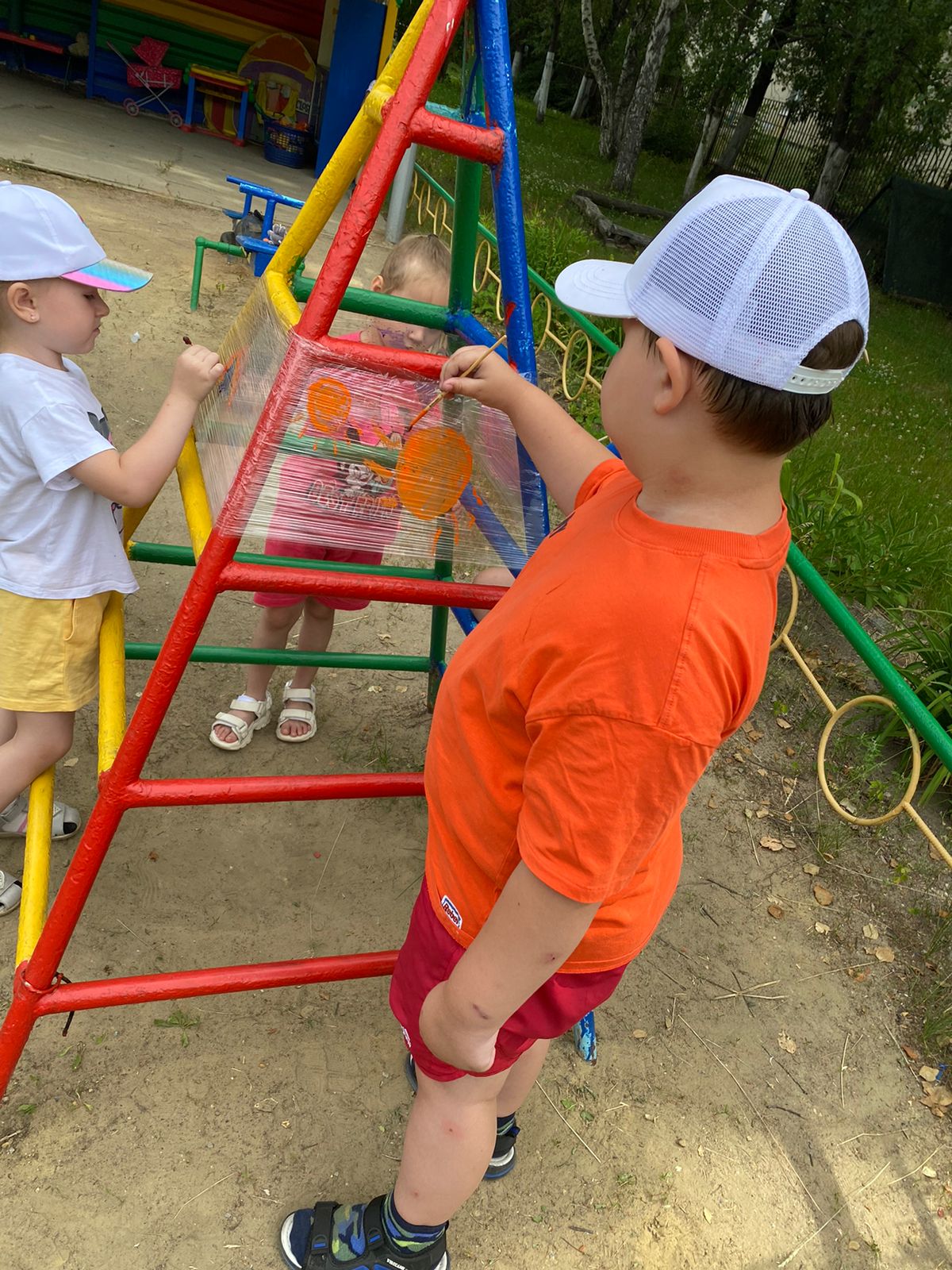 Дети весело и с пользой проводят время. У детей поднимается настроение, блестят глаза. Кто-то просто закрашивает плёнку разными цветами, смешивает краски и смотрит, какой цвет получился.