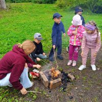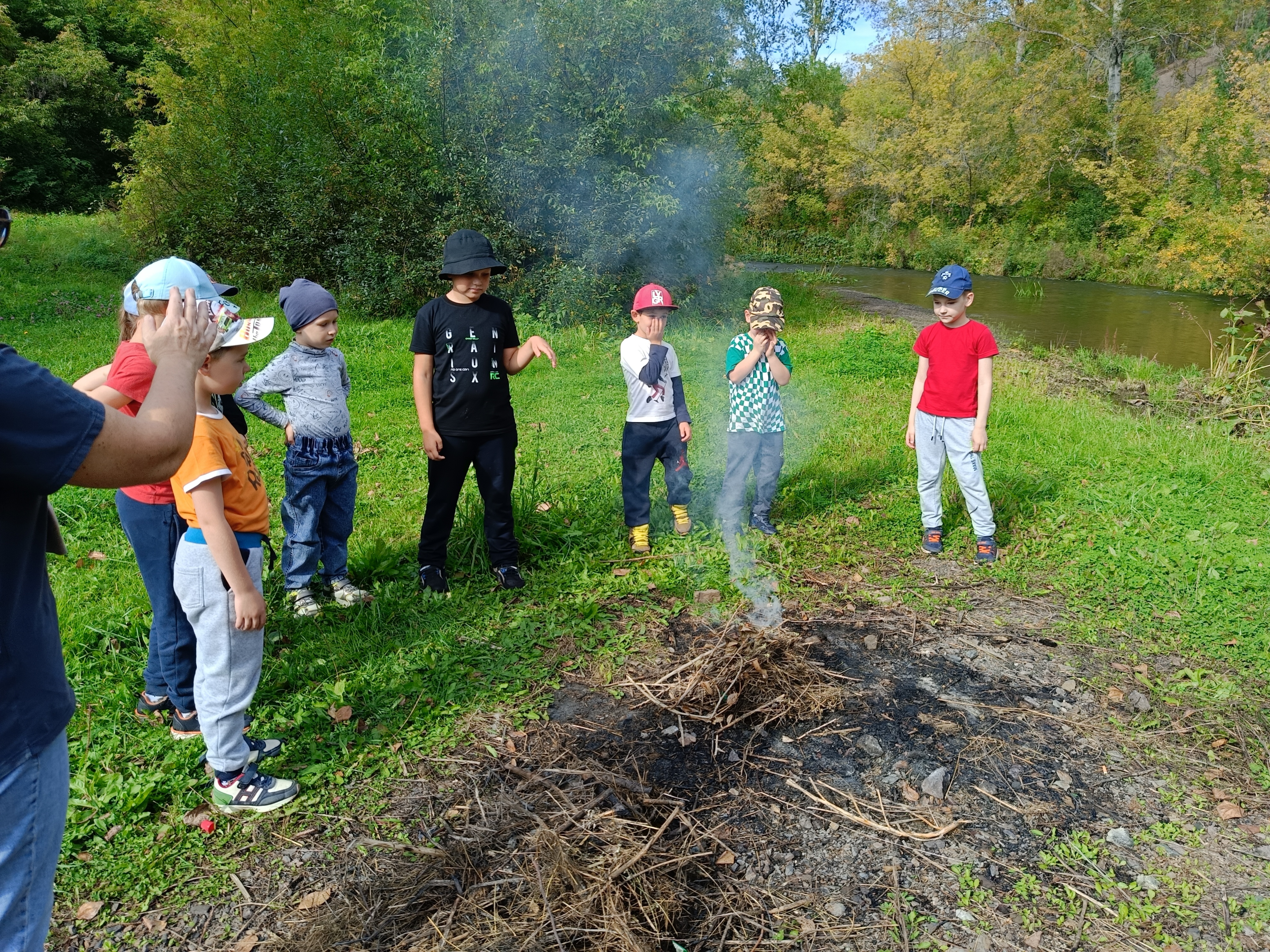 В завершении похода провели с детьми беседу о том, почему нельзя мусорить у воды, и все вместе собрали несколько случайных фантиков, оставленных нерадивыми отдыхающими, что оставить берег чистым. Затушили костёр, чтобы не случилось пожара. Ребята запомнили правила поведения в природе!