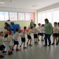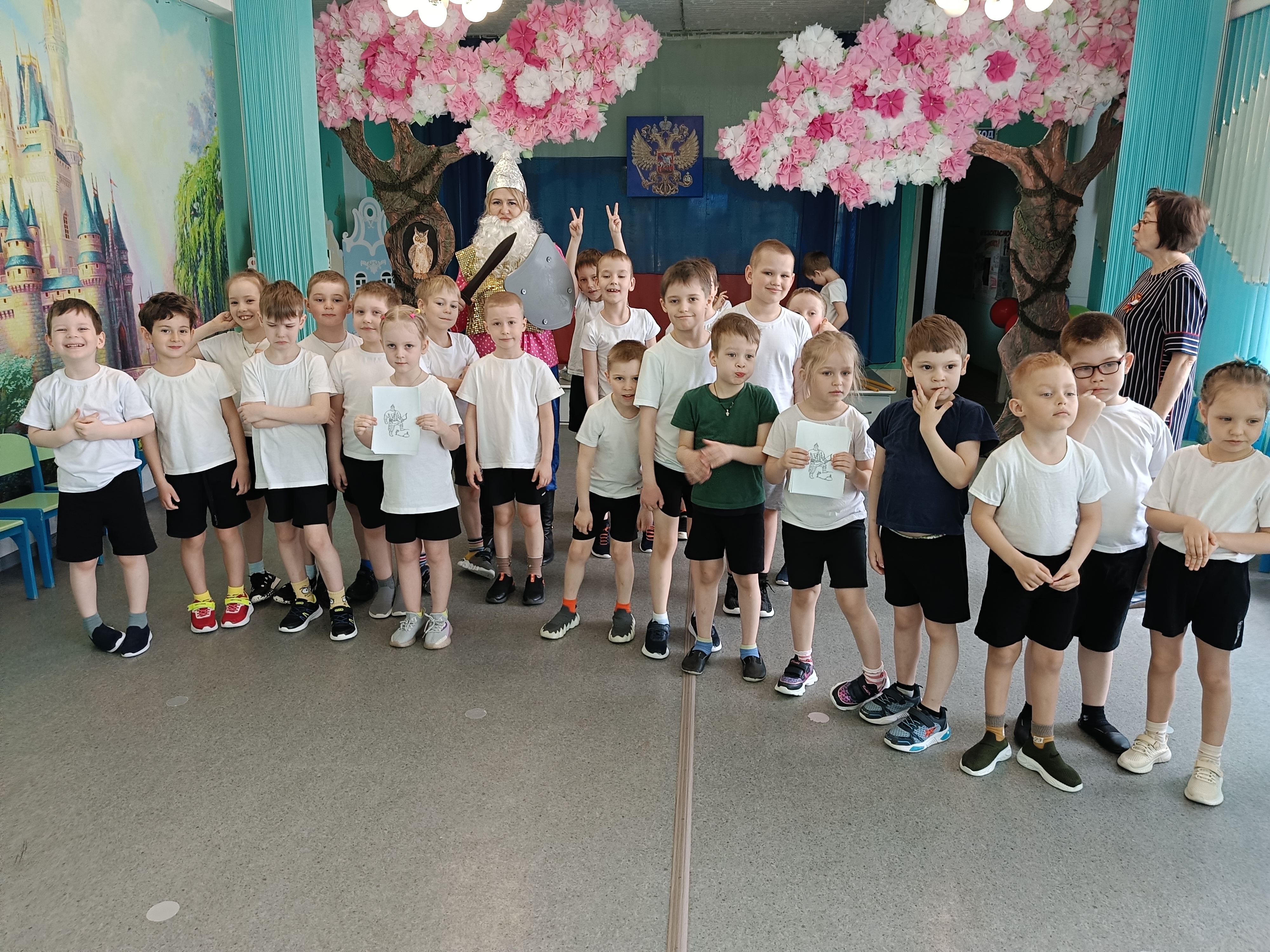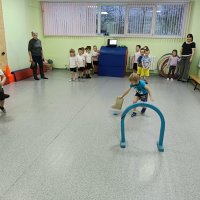 Цель: повышение интереса детей к занятиям спортом, к истории и культуре своей Родины. В гости пришёл богатырь, провёл с детьми викторину. Ребята посмотрели сценку о трёх богатырях, их жизни. Затем с дошкольниками провели богатырские забавы: «Бой со Змеем Горынычем», «Очистим дорогу от камней», «Перетягивание каната». Все старались изо всех сил прийти к финишу первыми, добиться победы для своей команды. С большим желанием играли в игры: «Чура», «Тропинка – копна - кочки», «Передай булаву». В зале царили смех, шум и веселье. На прощание богатырь подарил ребятам раскраски своих друзей.