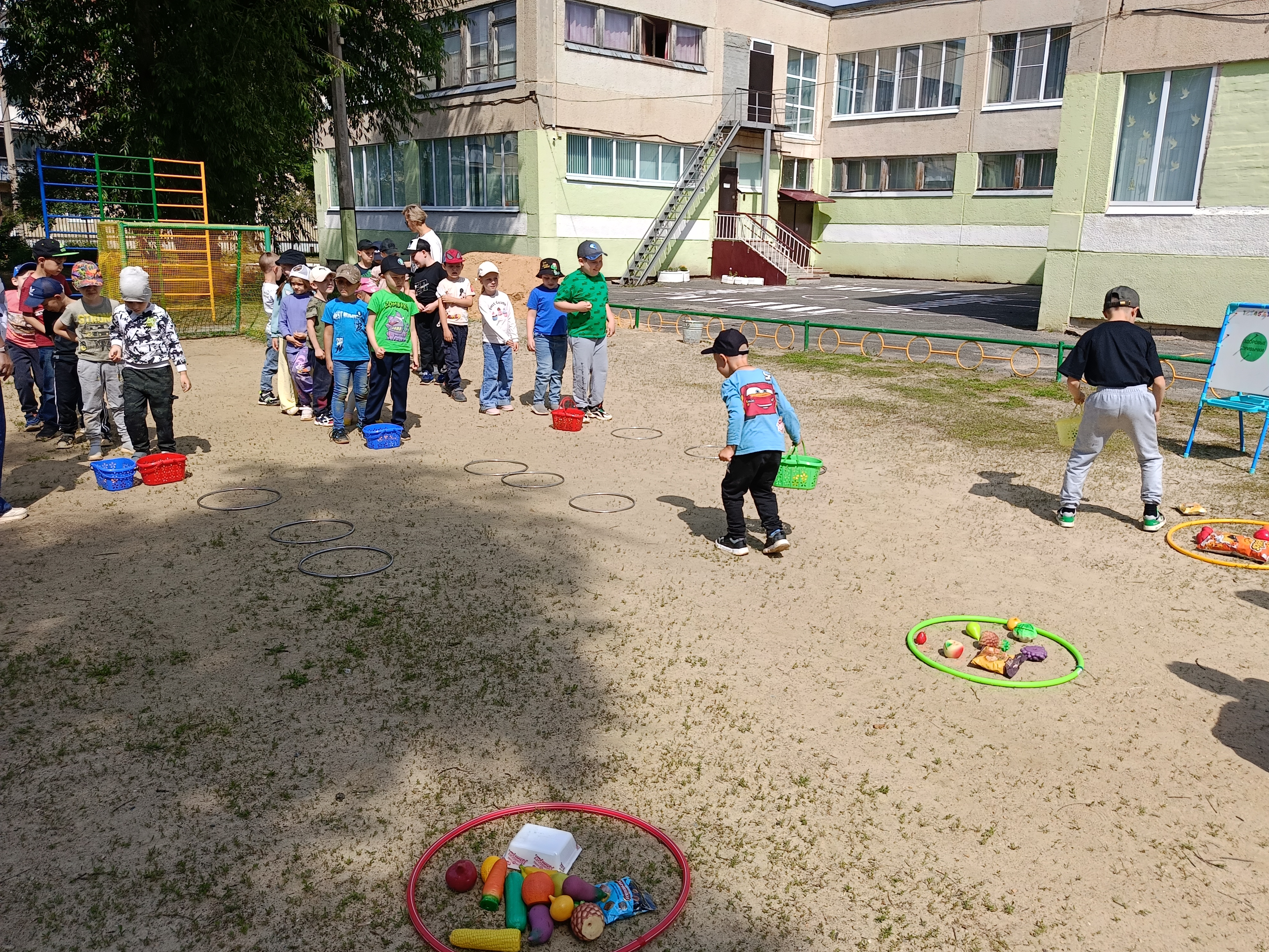 На построении ведущий познакомился с отрядами, дети прокричали название и девиз команды, получили маршрутные листы. Пошли на свои этапы. В ходе игры дошкольники вспомнили героев из сказок «Дюймовочка», «Малыш и Карлсон», «Айболит», «Дедушка Мазай и зайцы», «Незнайка на Луне», «Дядя Стёпа», «Что такое хорошо, и что такое плохо». Во всех интересных эстафетах участники команды показали свою силу, ловкость и командный дух. За успешное прохождение этапов все участники были награждены спортивными призами (скакалками). Ребята с удовольствием поиграли, повеселились.