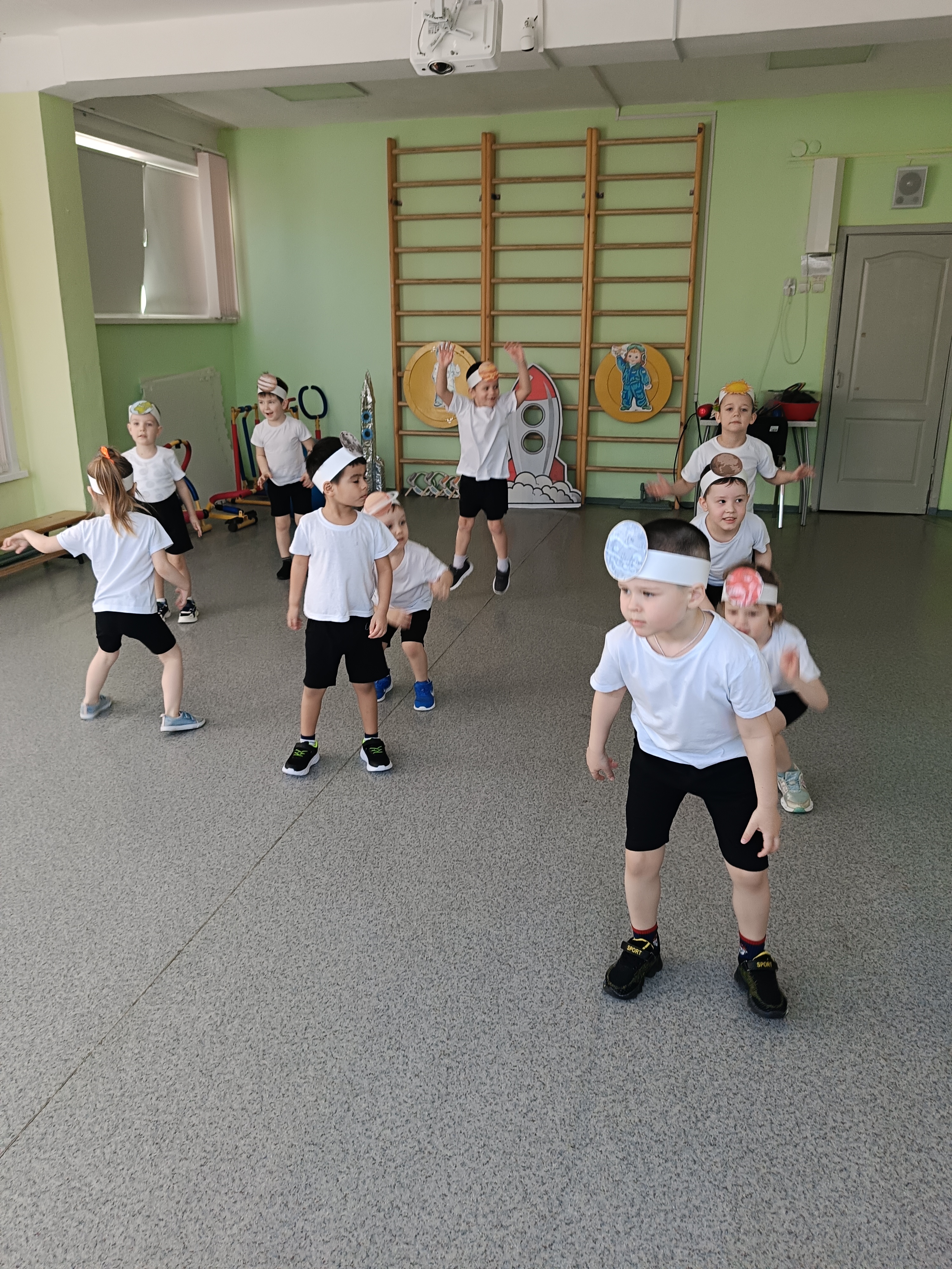 9 апреля дети младших и средних групп отправились в увлекательное космическое путешествие. Прежде, чем полететь в космос, очень важно, физическая подготовка ребят. Малыши сделали разминку под музыку, чтобы быть самыми сильными, ловкими и крепкими.