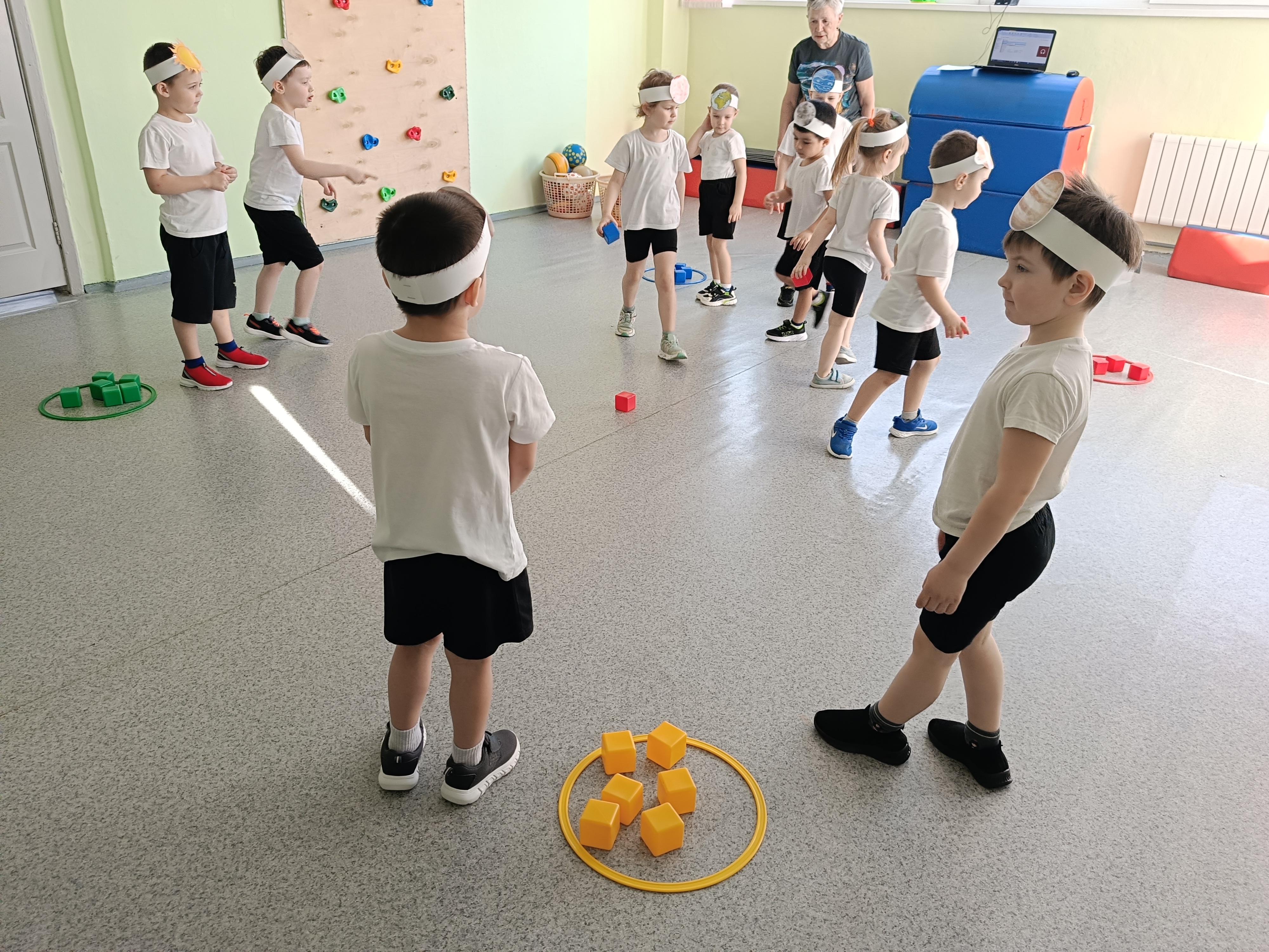 В космосе дети поиграли в игры: «Собери звезды по цвету», «Займи место в ракете», «Космическая пропасть», «Луноход», «Метеоритный дождь», «Роботы и звёзды».