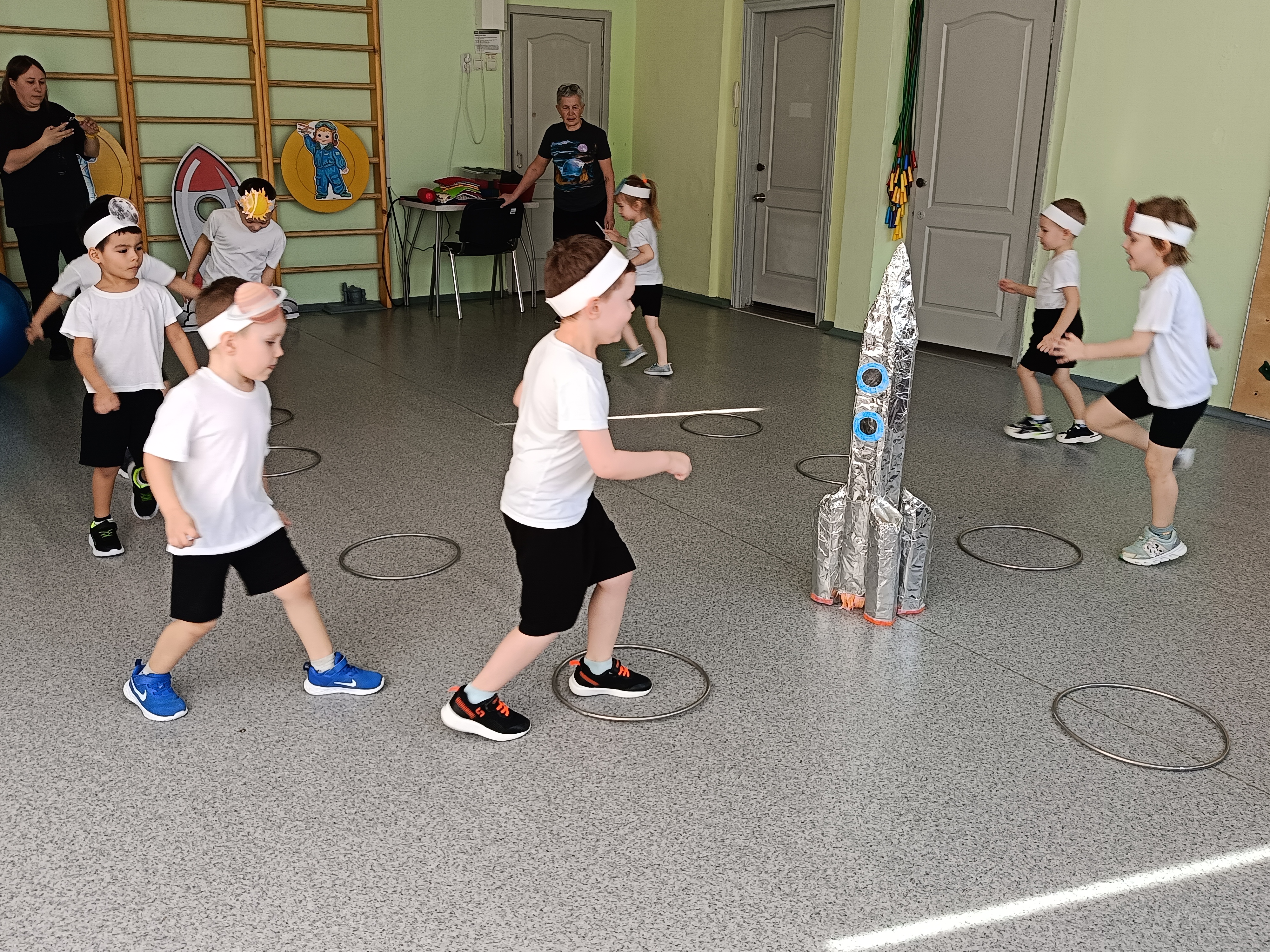 В программу мероприятий вошли упражнения с обручами, аттракцион «Собираем марсианские камни», музыкальная игра «Роботы и звёзды», игра с парашютом «Солнце», которые обеспечили хорошую двигательную активность и способствовали позитивному эмоциональному состоянию. Ребята много улыбались и смеялись от восторга. Спортивные развлечения прошли позитивно и задорно, оставив за собой самые лучшие впечатления.