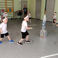 Ребят ждали интересные испытания. Как космонавты, они прошли «предполетную» физическую подготовку — это были зарядка и тренировочные упражнения. С азартом дети приняли участие в стилизованных эстафетах: «Инопланетный бег с препятствиями», «Космический полёт», «Дружный экипаж», «Ловкие космонавты». Какой же полет в космос без весёлой музыки и песни? Именно «космическая» музыка помогла детям в большей степени представить себя настоящими космонавтами. Ребята с удовольствием играли в игры «Астероидная битва», «Метеоритный дождь», «Ждут нас быстрые ракеты…», «Созвездие». Соревновались, кто дольше простоит на одной ноге, «в ласточке». Спортивное развлечение прошло весело и увлекательно!