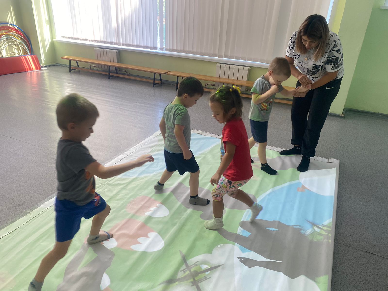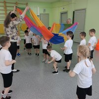 Группа Сказка занимались АФК. Такие занятия положительно влияют на физическое и моторное развитие ребёнка (укрепление мышц тела, формирование правильной осанки, профилактика плоскостопия, помощь с лишним весом).