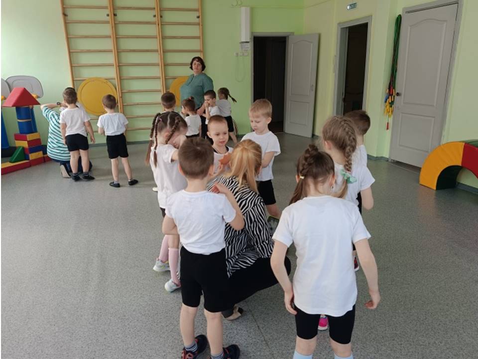 -Учить детей ориентироваться “на себе”, иными словами ребенок должен овладеть умением самостоятельно выделять “на себе” стороны справа, слева, вверху и т. д.